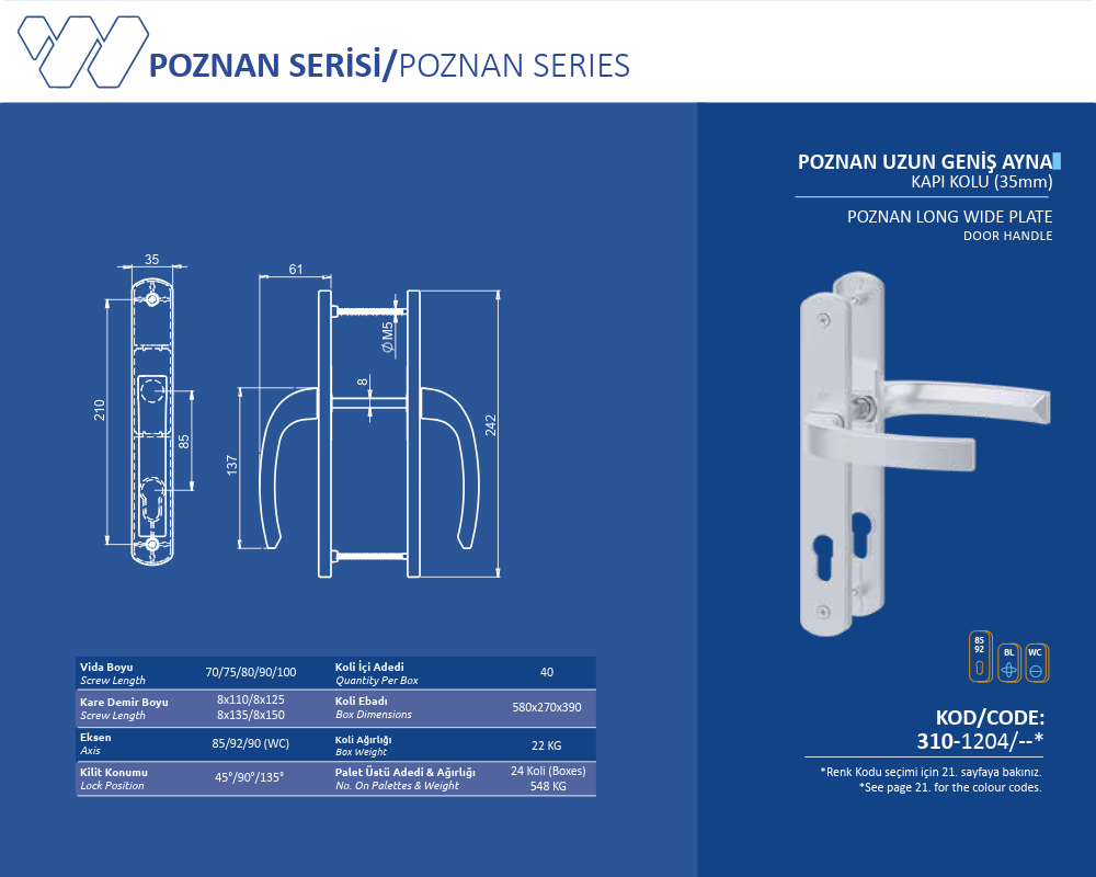 Palet Üstü Adedi & Ağırlığı (No. on Palettes & Weight) 24 Koli (Boxes) 548 KG