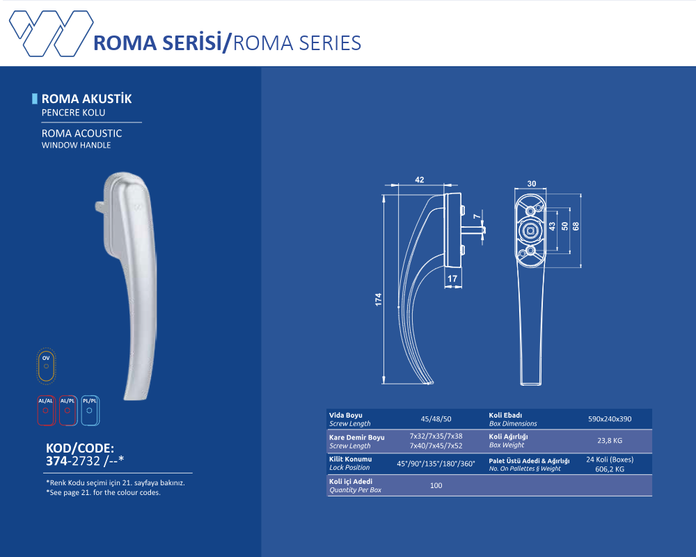 Palet Üstü Adedi & Ağırlığı (No. on Palettes & Weight) 24 Koli (Boxes) 606,2 KG