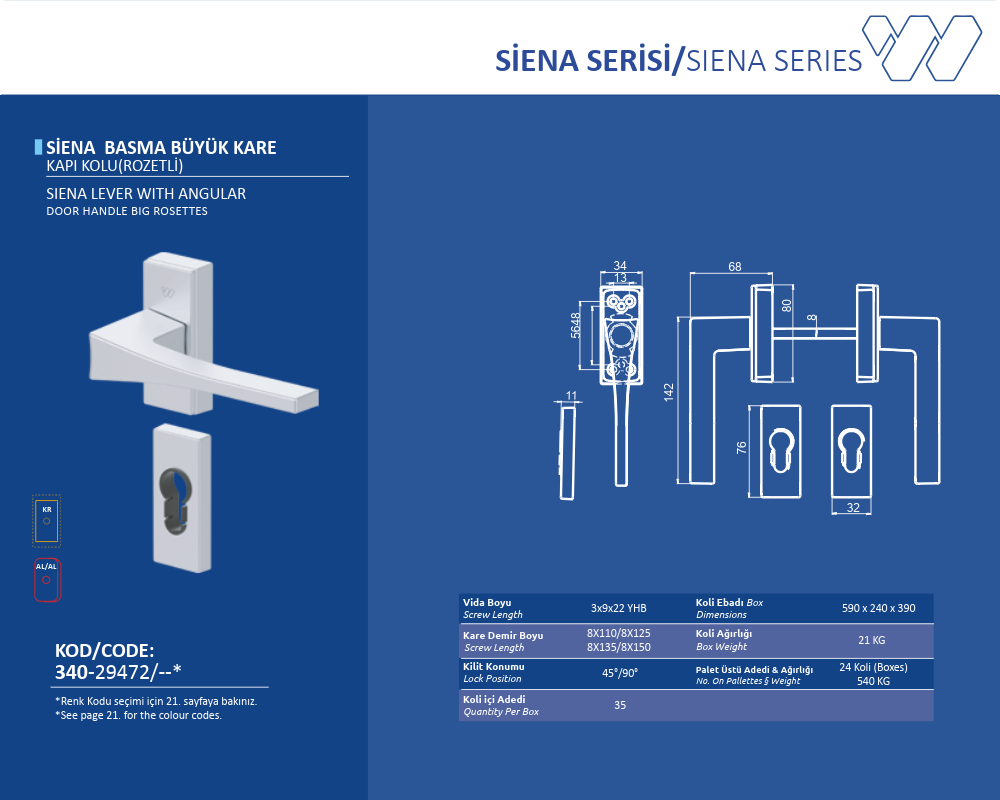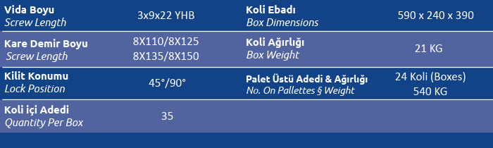 Palet Üstü Adedi & Ağırlığı (No. on Palettes & Weight) 24 Koli (Boxes) 540 KG