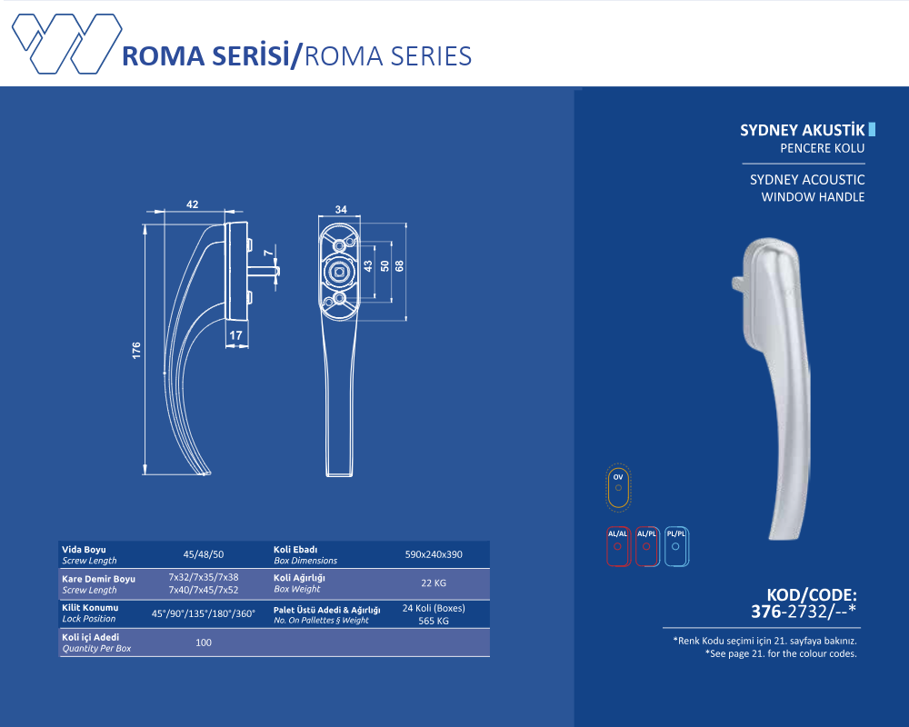 Palet Üstü Adedi & Ağırlığı (No. on Palettes & Weight) 24 Koli (Boxes) 565 KG