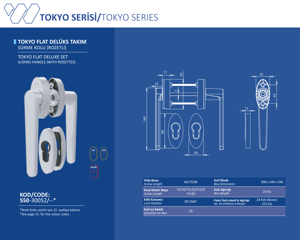 Palet Üstü Adedi & Ağırlığı (No. on Palettes & Weight) 24 Koli (Boxes) 375 KG
