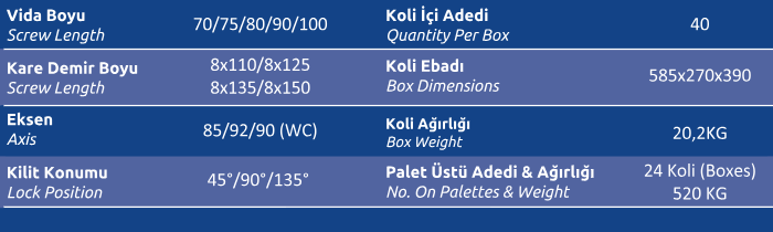 Kilit Konumu (Lock Position) 45° / 90° / 135°