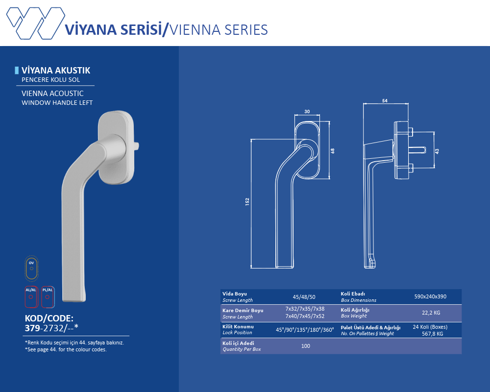 Palet Üstü Adedi & Ağırlığı (No. on Palettes & Weight) 24 Koli (Boxes) 567,8 KG